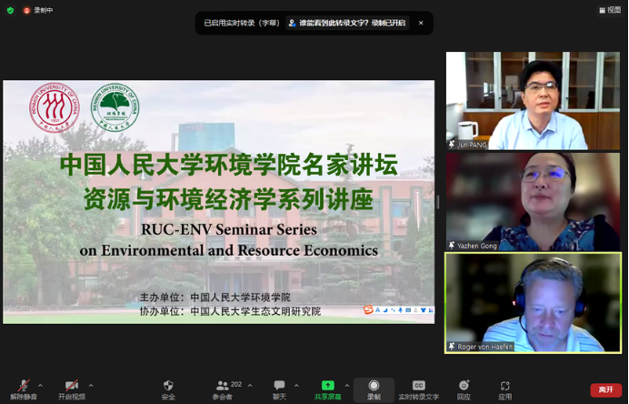 2022年5月18日,性爱网站成功在线举办“名家讲坛—资源与环境经济学系列讲座”第一讲。第一讲的报告人是北卡罗莱纳州立大学环境与资源经济政策中心副主任、资源与环境经济学顶级期刊JEEM共同主编Roger H. von Haefen教授。讲座由我院龚亚珍副教授主持,环境性爱网站院长庞军教授为论坛的正式启动致辞,来自性爱网站 、清华大学、中国科性爱网站大学、卡耐基梅隆大学、加州理工性爱网站等四十余所国内外高校与科研机构的280余名师生参加了本次讲座。与会师生认真聆听了Roger H. von Haefen教授的报告,并与教授进行了深入的探讨,师生反响热烈。