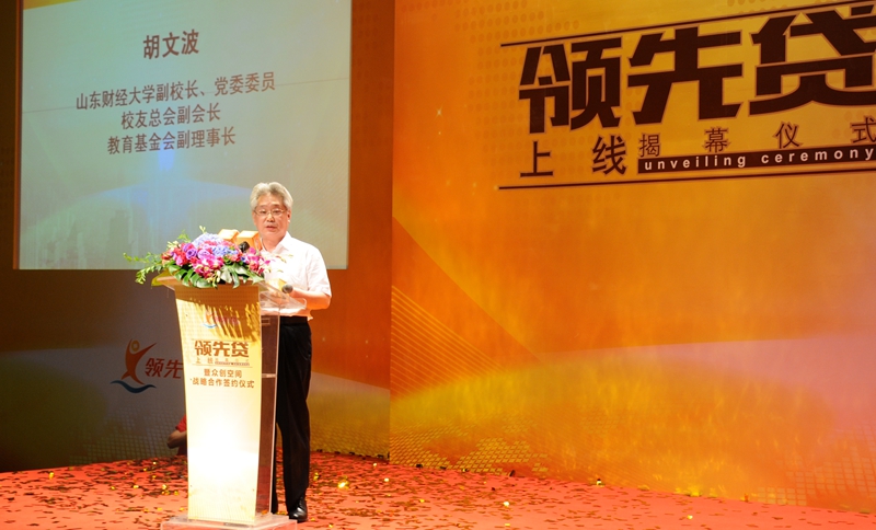 胡文波在讲话中感谢朱上民校友对学校发展提供的支持,祝贺“领先贷”隆重上线,希望校友企业勇于创新,引领社会经济发展,在“大众创业、万众创新”中起到行业创新模范的作用。