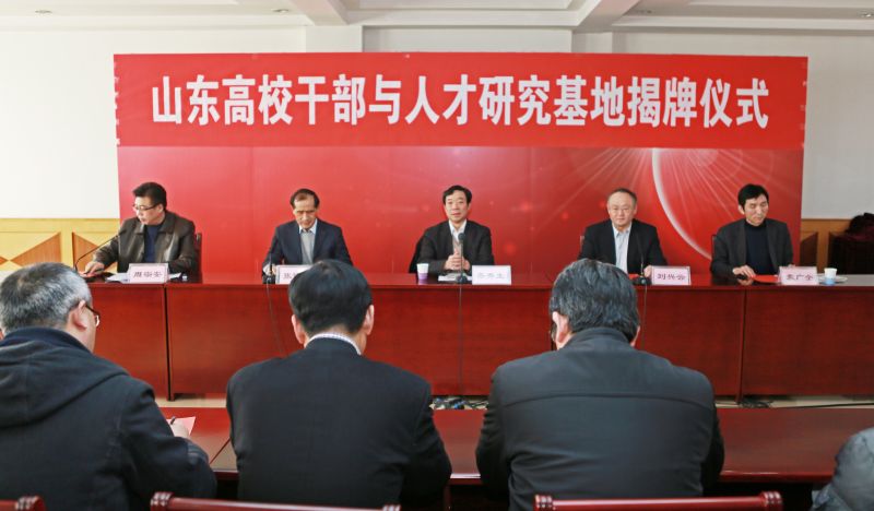 12月29日下午,山东高校干部与人才研究基地揭牌仪式在燕山校区举行。省委高校工委副书记齐秀生、我校党委书记刘兴云共同为基地揭牌。仪式由党委组织部部长周宗安主持。