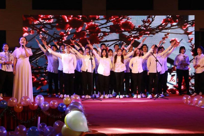 晚会在全体师生合唱校歌《梦想花开》中圆满落幕。