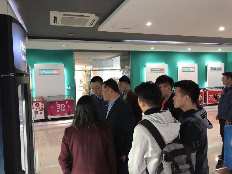 师生实地参观青岛海容商用冷链股份有限公司的生产车间及展销产品,对公司项目及相关业务流程有了更加深入了解。