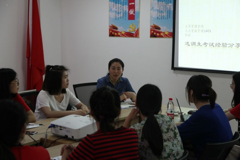 在学院会议室举办了选调生考试经验分享座谈会。会议由刘薇老师主持,邀请14级人力资源管理专业1班的张茹同学为大家分享了选调生考试过程中的自身经历和经验。