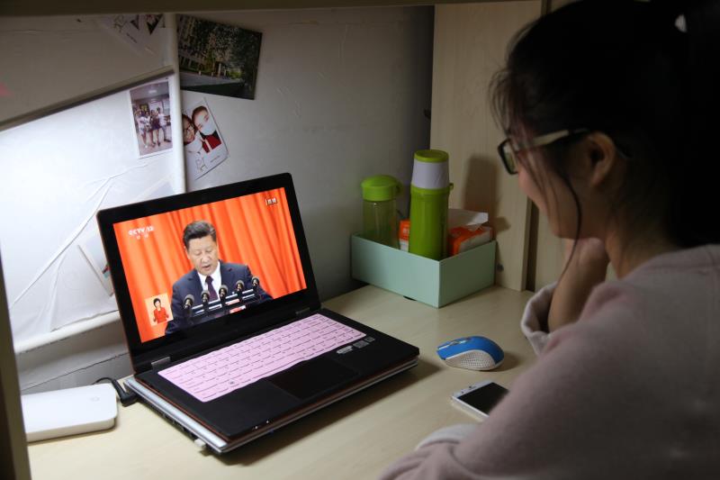 师生采用各种方式收听收看开幕会盛况,关注热议总书记报告。