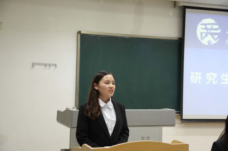 由于岗位变换,即日起于潇老师将不再参与研究生的管理服务工作,后续工作由尤泽民老师接替。成立大会上,于潇老师饱含深情地发表了“告别演说”。她首先对大力支持研究生工作的老师与同学们表示衷心感谢,并表示从工作岗位的初入者到学院发展的见证者,与同学们共同成长是她最大的工作收获。她还对研究生提出了新的期望:在实践研究中发现学术乐趣,在知识积累中提升学术能力,培养研究能力的同时树立正确的社会责任感,成为一名有理想、有担当的爱国青年。新任辅导员尤泽民老师在发言中提出,研会成员工作的立意之本即为增强自我管理意识,工作的细致准确应始终作为着力点,研会工作者要培养服务意识。同时,研究生新生应尽快完成角色转变并积极投入到学术研究中去,做好未来职业发展规划。