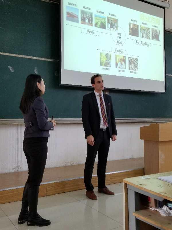 外事办主任、工商系主任王璟珉教授、旅游系主任于伟副教授、营销系刘珊副教授等教师一起会谈,就未来双方在本科生国际班课程、旅游专业课程的合作做了深入协商,并对“CES法国国家侍酒师认证”以及海外实习、就业等都进行了实质性的探讨,双方合作方向明确,等待下一步敲定合作细节。会谈全程由旅游系学生组织、服务,法国客人对服务学生的专业、周到、精湛的茶艺表示赞赏和钦佩。
