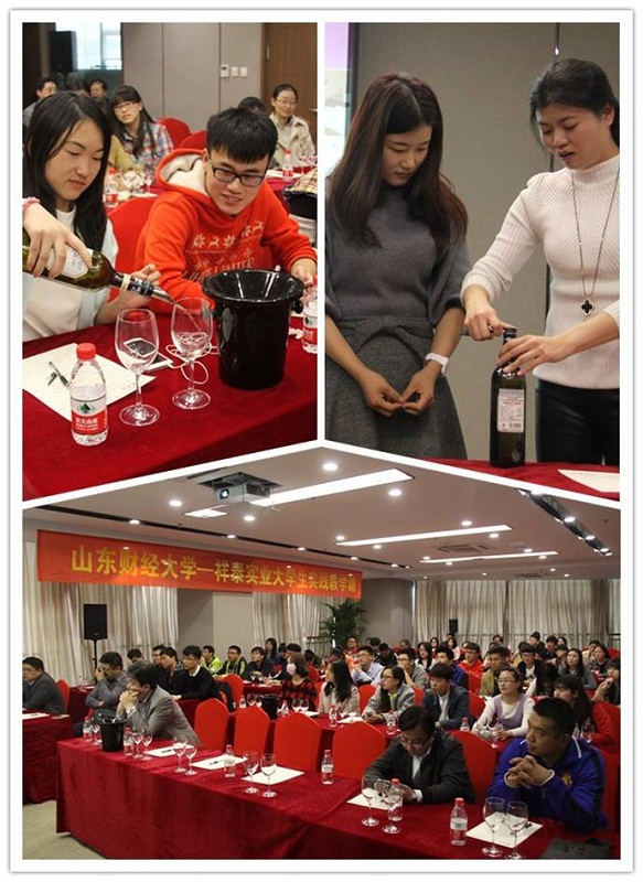 联合举办的大学生实践教学课“红酒知识讲座”在祥泰实业第二会议室开讲。祥泰实业副董事长姜伟、副总经理石继东、院党委书记杨哲及70余名师生参加讲座。