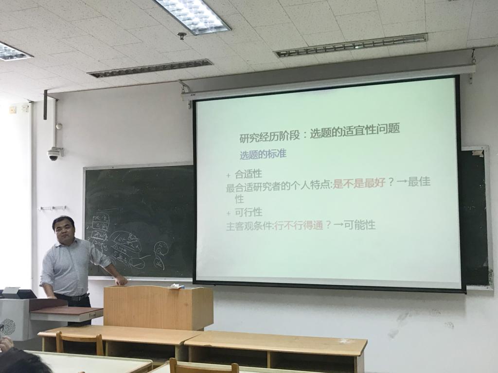 最后,徐鹏总结到,一篇优秀、合格的硕士论文应具备三个必要条件:选题适宜性、理论逻辑性、方法规范性。经过徐鹏的讲解,大家受益颇深,讲座在和谐的氛围中结束。讲座结束后,同学们针对自己开题中存在的实际问题与徐鹏进行了进一步交流。