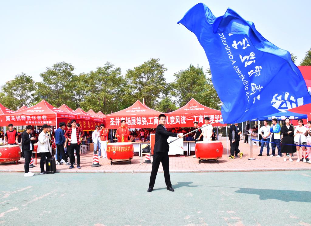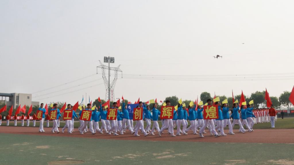 方阵口号响亮、步伐整齐,展现工商学子昂扬风采。 经过近两个月的刻苦训练,啦啦操队动作娴熟、热情洋溢,是田径场边一抹亮丽的风景。
