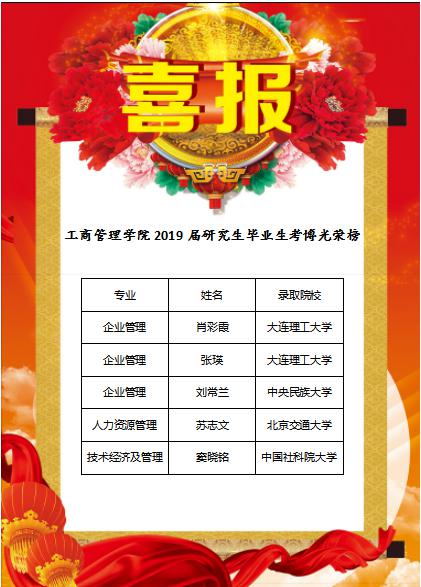 2019届研究生毕业生共考取博士5人,分别被中国社科院大学、北京交通大学、大连理工大学、中央民族大学等国内知名高校录取,占研究生毕业生总数的16.7%。在此,特向学院师生报喜,为辛勤耕耘的优秀毕业生们表示祝贺!