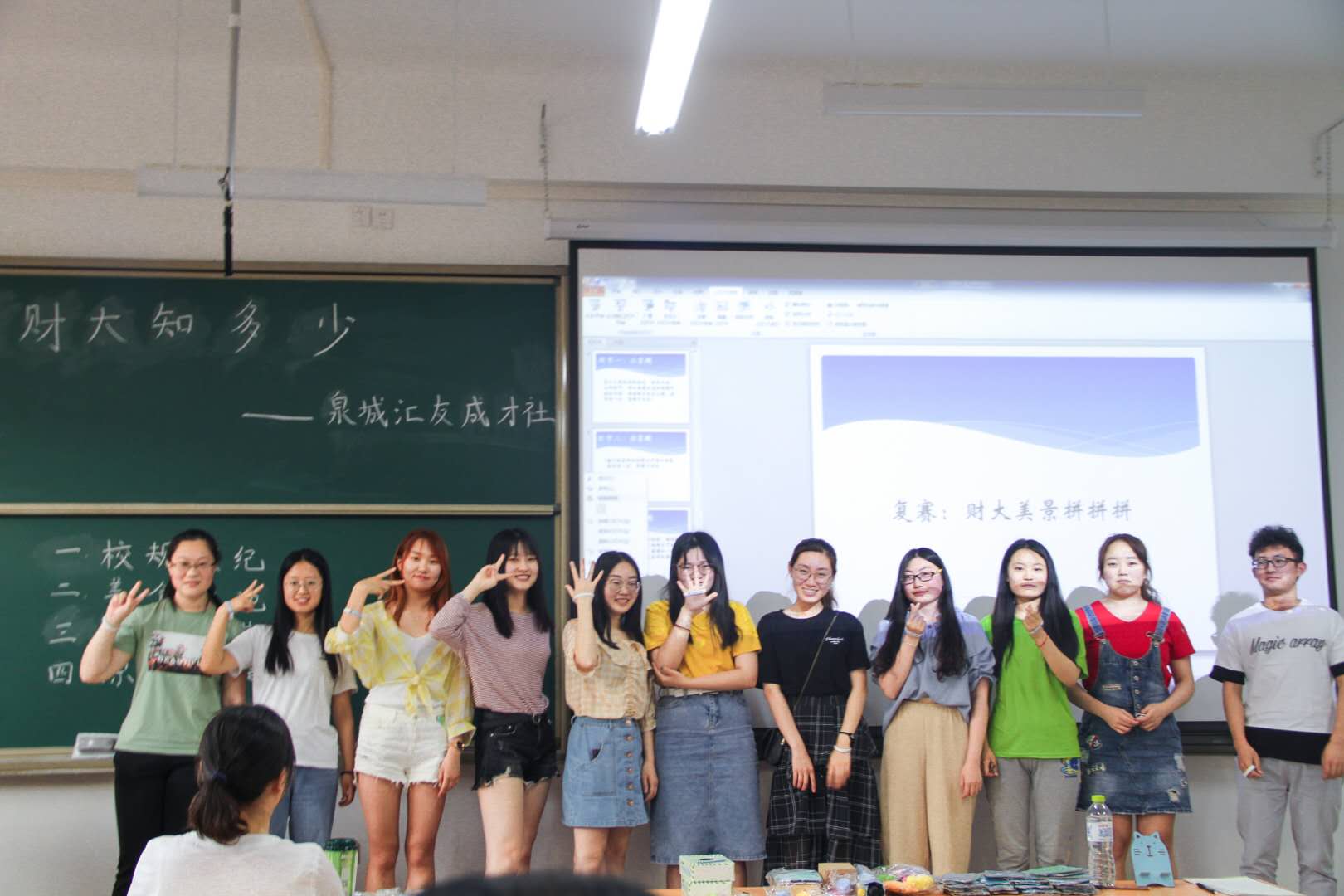 泉城汇友成才社在圣井校区6号教学楼116教室举办了“我对财大知多少”趣味知识竞答活动。本次活动通过同学自由组团报名参加的形式,意在引导大家不断发现财大的美好瞬间,加强同学们与学校各方面的关系纽带,增强对母校的认同感和热爱之情!