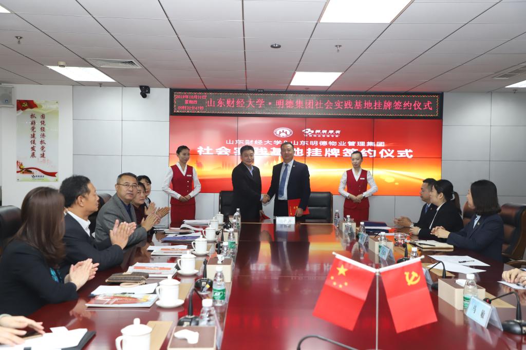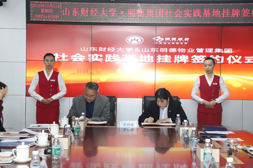与山东明德物业管理集团社会实践教学基地签约暨授牌仪式在明德集团党建会议室举行。山东明德物业管理集团董事执行总裁王正坤、副总裁邹心忠、副总裁金艺、人力资源中心总经理刘丹丹、性爱网站