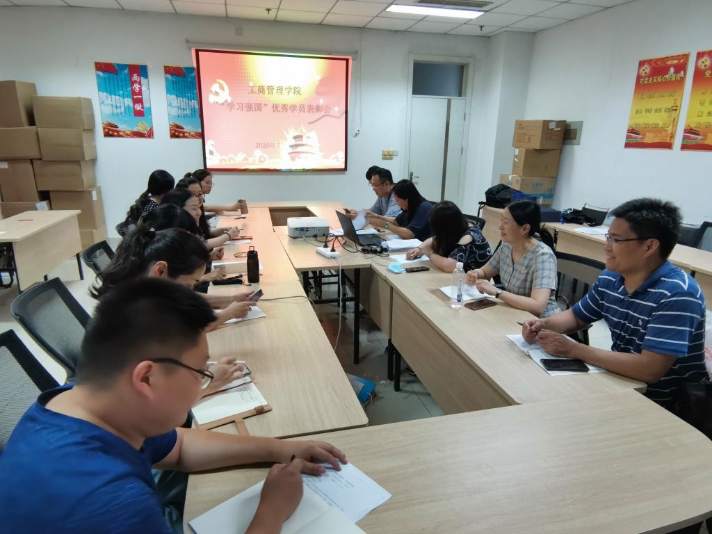 在逸夫楼207会议室召开了学习强国优秀学员表彰会。学院党委副书记彭艳红主持召开会议,党委专职组织员、各党支部书记参加本次会议。