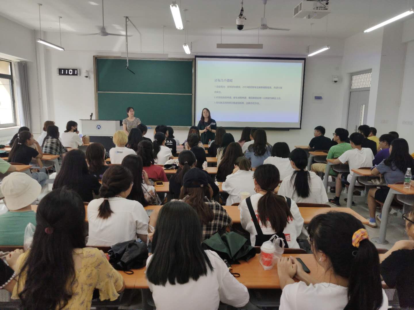 班会上,全体辅导员老师再次强调了疫情防控的重要性,要求学生坚持疫情防控不放松,做好体温一日三检,按时完成疫情系统填报,出现发烧等症状第一时间向辅导员汇报,做好个人和宿舍的卫生清洁。在日常管理方面,严格请销假制度,要求学生“非必要不外出”;严格执行夜间零报告制度,未经同意不得夜不归宿;注意宿舍卫生和消防安全。辅导员老师们还介绍了学校违纪处分条例、奖学金制度、贫困生制度的改革和调整。在“开学第一课”中,2017级着重强调了校区搬迁的注意事项,引导学生抓住秋招机会,树立先就业后择业的正确就业观念;2018级主要强调了在个人选择发展的关键学年——大三,合理选择未来发展方向,夯实专业知识,提高求职技能;2019级介绍了分专业之后宿舍调整的安排,新班级的班委的产生,并引导学生做好大一学年的总结和大二学年的学业规划。