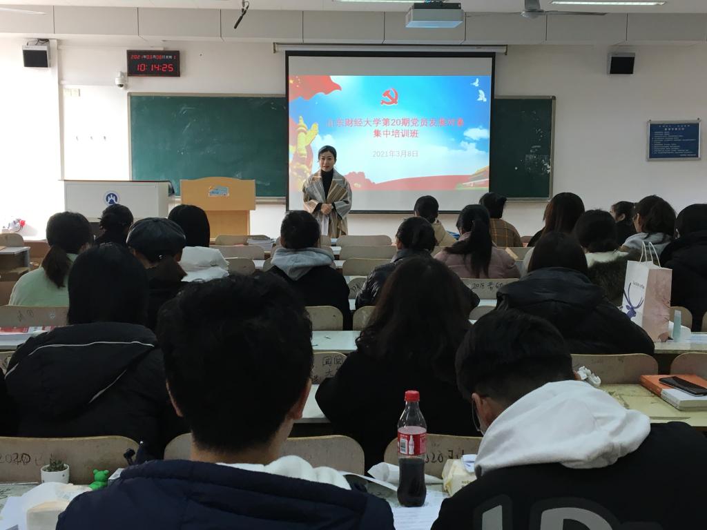 在逸夫楼604教室举办第20期党员发展对象培训班。党委副书记彭艳红出席仪式并做了讲话,辅导员任康及71名发展对象参加,开班仪式由任康主持。
