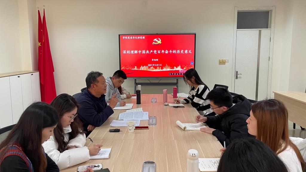 党委书记李旭刚在逸夫楼207为研究生第三党支部上了一堂题为“深刻理解中国共产党百年奋斗的历史意义”的党课,性爱网站