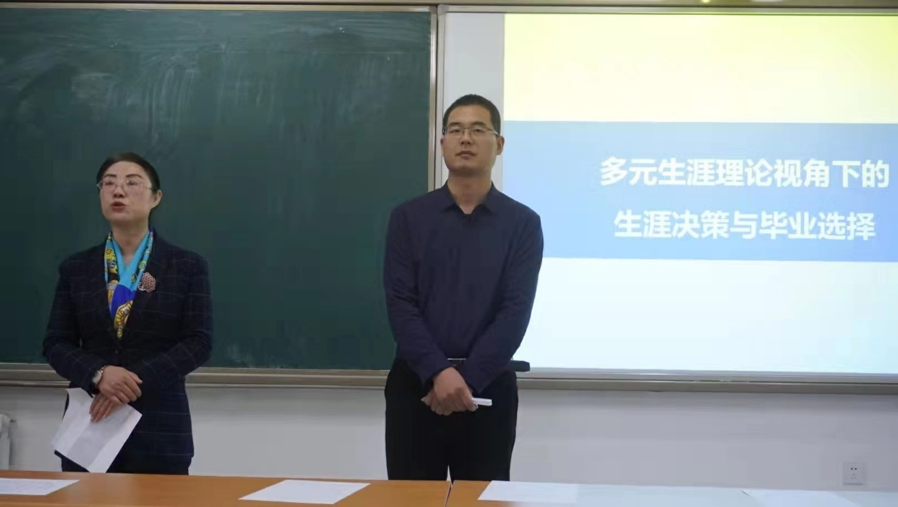 承办的以“多元生涯理论视角下生涯决策与毕业选择”为主题的学生职业生涯规划活动。本次活动有幸邀请了刘泽东老师担任主讲,由学工部副部长孙丽华担任主持。