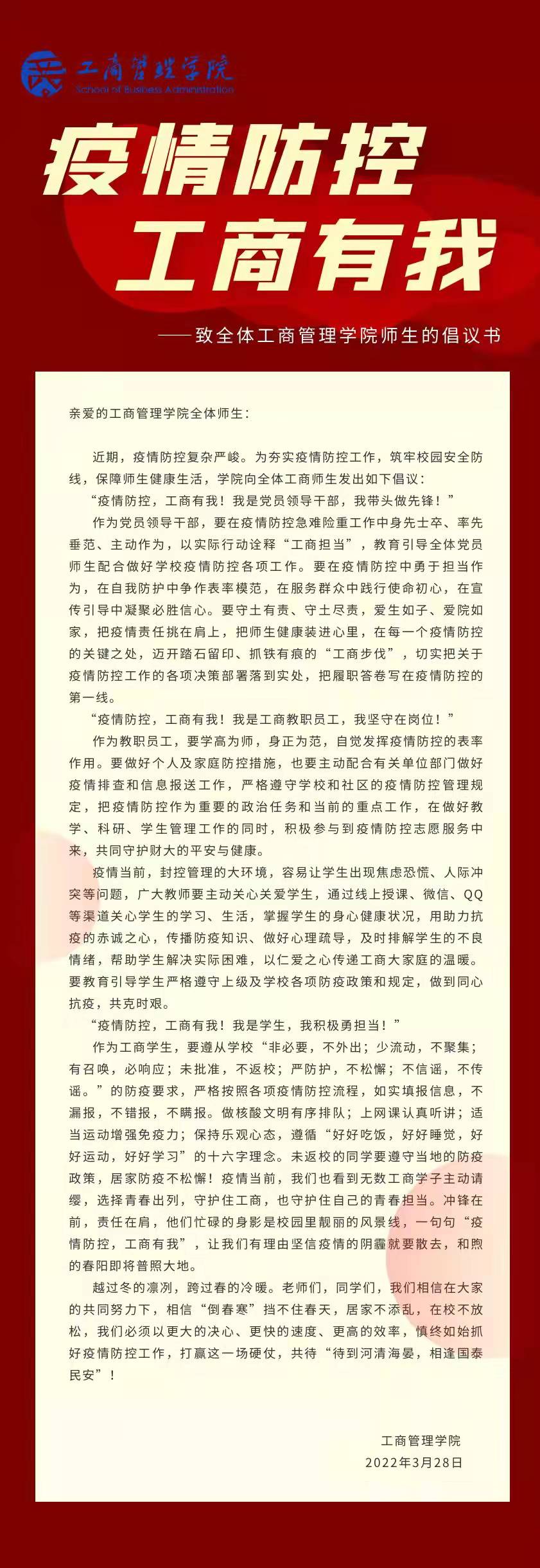 疫情防控,工商有我——致全体性爱网站 师生的倡议书
