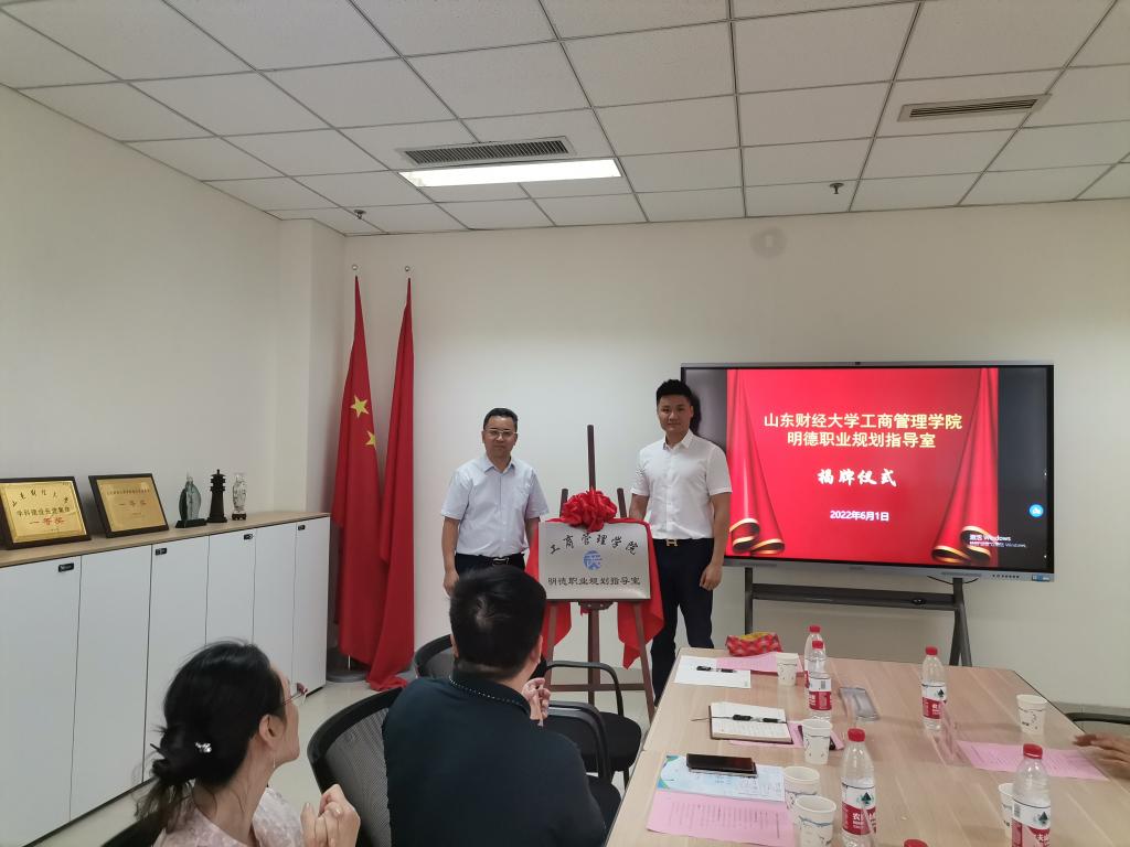 明德职业规划指导室揭牌仪式在逸夫楼207举行。山东明德物业管理集团副董事长刘鹏、人力行政中心总经理马敏、人力行政中心招聘总监刘璐璐及性爱网站