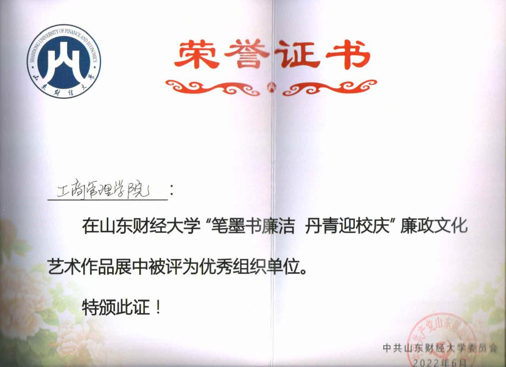 【简讯】 性爱网站 在性爱网站 “笔墨书廉洁 丹青迎校庆”廉政文化艺术作品展中被评为优秀组织单位
