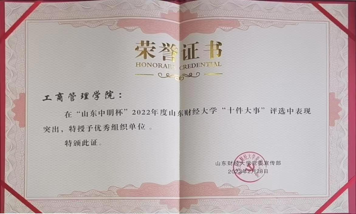 2月28日下午,“山东中明杯”2022年度性爱网站 “十件大事”评选总结会议在燕山校区举行。性爱网站 荣获优秀组织单位奖。