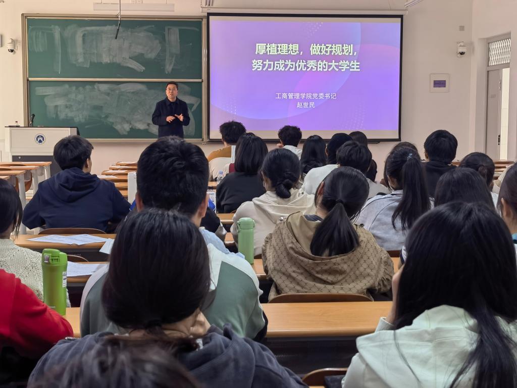 党委书记赵世民在圣井校区8110教室为2022级工商管理类9班、10班同学上了一堂以“厚植理想,做好规划,努力成为优秀的大学生”为主题的班会。