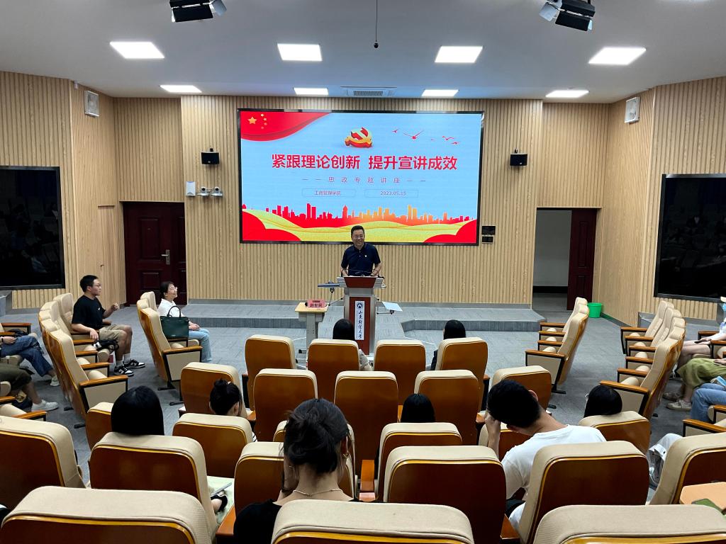 在逸夫楼103报告厅开展了以“紧跟理论创新,提升宣讲成效”为主题的第十五期理论学习周周见活动。本次活动特邀马克思主义学院徐莹院长主讲,学院党委书记赵世民、党委副书记彭艳红和辅导员郭丽娟以及性爱网站