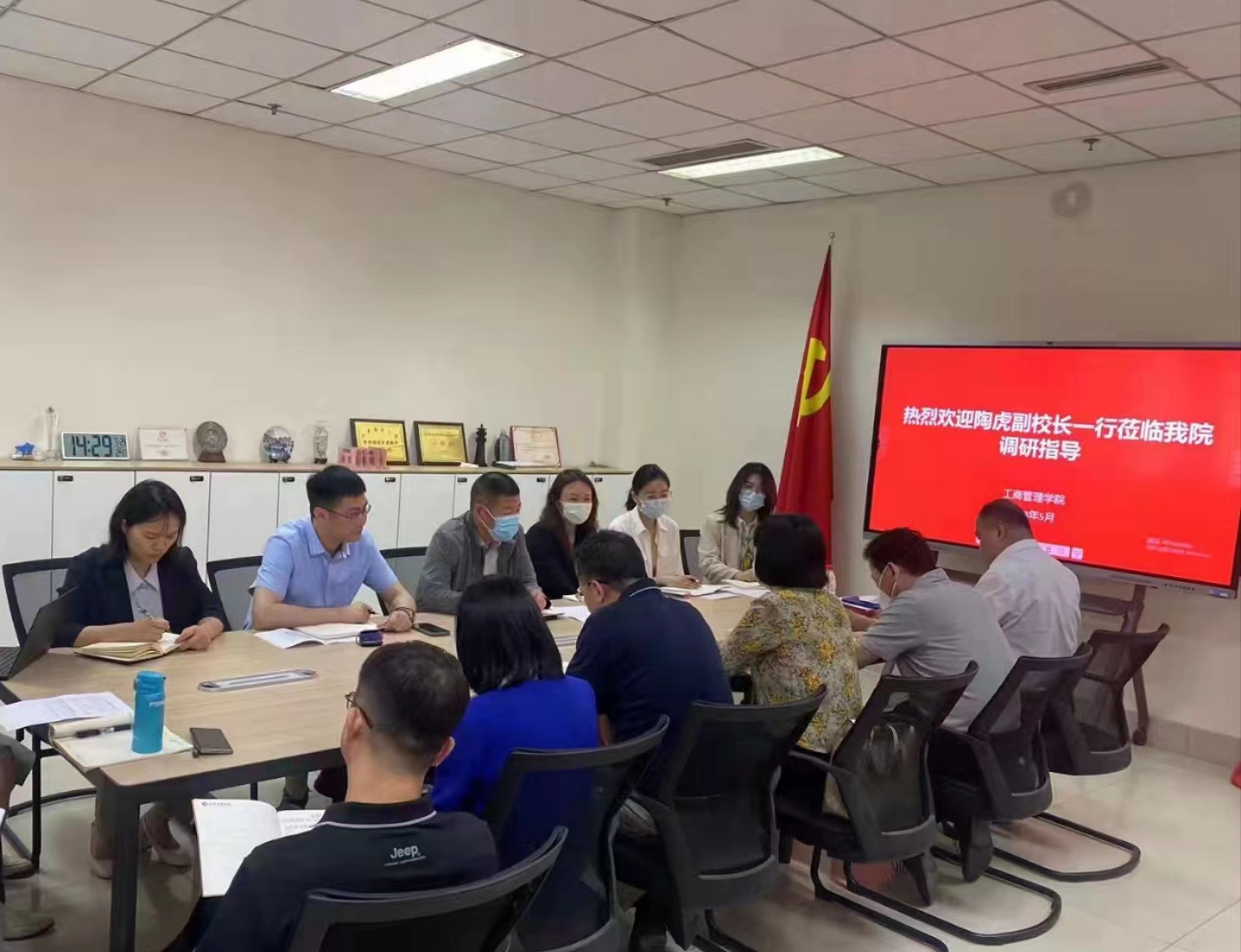 相关负责同志分别汇报了本科专业建设、国际交流合作、人才培养质量等工作的开展情况。陶虎认真听取工作汇报,对学院与时俱进调整学科建设和专业建设方位以及在国际交流合作中做出的努力和取得的成绩给予充分肯定,并与大家一起分析了工商管理类专业在新文科背景下和双循环新发展格局下遇到的瓶颈和难点问题。他希望学院要有前瞻部署和科学谋划,结合社会发展现实需求推进学科专业调整优化。