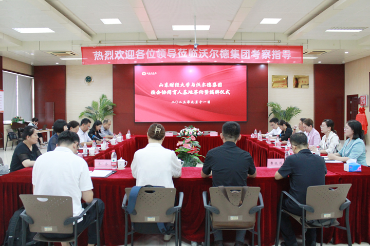 的学科特色与优势,并对沃尔德集团给予的关注和支持表示感谢。张红霞指出,与沃尔德集团开展协同育人合作是推动校企互惠共生、提升学校服务地方经济社会发展的重要举措,也是充分发挥高校教育职能和学科建设优势的具体实践。希望双方在前期良好合作的基础上,以校企协同育人基地建设为契机,在党建工作、人才培养、科学研究、学生就业等领域开展更紧密的合作,共谱校企协同发展新篇章。