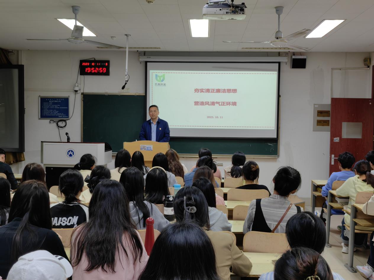 在逸夫楼206教室开展题为“夯实清正廉洁思想,营造风清气正环境”的青廉课堂教育。此次青廉课堂由学院党委书记赵世民主讲,2023级全体研究生参加。
