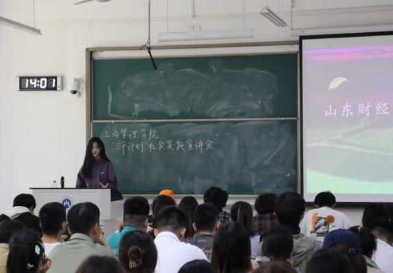 宣讲会上,学生代表于浩淼首先从“三千计划”选题、队伍组建、立项材料撰写、调研准备四个方向展开讲述,并根据自身项目经历,建议同学们紧密结合实践地特色以及现实需求,确保活动有效实施。学生代表尹少奇则结合自身参赛经验,重点从“三千计划”实施过程以及成果展示分享经验,同时讲解了调研常用方法,并提醒同学们要选用真正契合自身项目的调研方法,将调研与数据分析相结合。随后,学生代表赵梓束从组队、立项、调研等阶段提供了相关建议,强调要明确调研目标和意义,深入了解当地资源,并及时联系当地做好对接工作。最后,学生代表祝晓萱以具体团队为例,分别从调研前期准备、实地调研等方面分享经验,尤其在项目呈现阶段,祝晓萱介绍了如何利用推文进行投稿宣传,并推荐大家在中国青年网、齐鲁晚报等媒体上进行投稿,以便更好地展示团队调研成果。