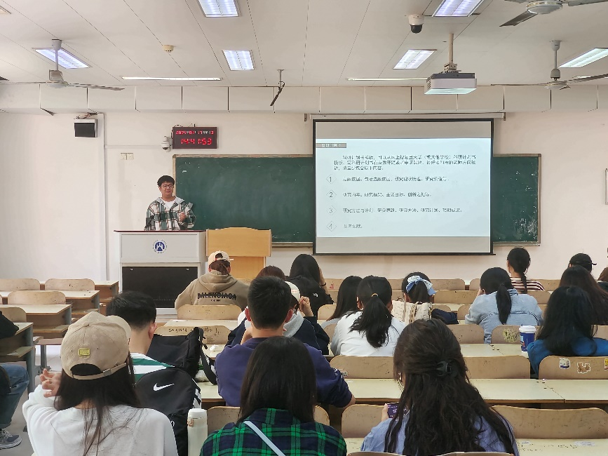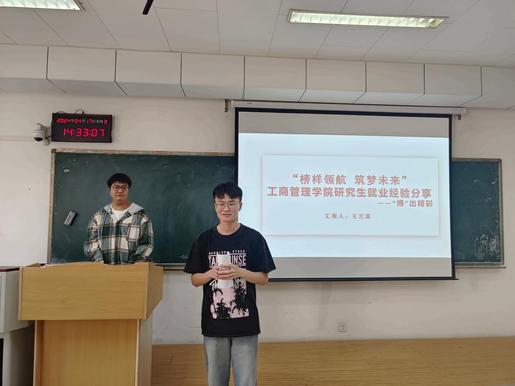 于4月17日下午在逸夫楼202举行“榜样领航助力未来”为主题的研究生就业经验分享会一:“博”出精彩。本次活动邀请了已被上海财经大学拟录取的2021级企业管理硕士研究生王艺霖主讲,会议由研究生会主席曹炳凯主持,研一、研二全体研究生参加。