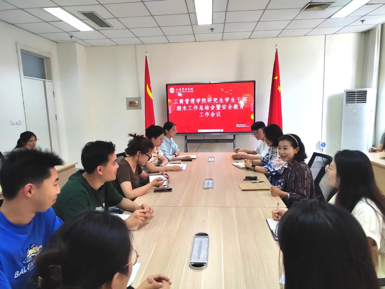 会议尾声,彭艳红充分肯定了研究生会、班级和研究生党支部的工作及学生干部的进步与成长,并对未来各部门的发展提出了建议,同时强调了宿舍安全与假期留校的管理问题。她还指出学生干部要提高工作的主动性,在班级和学院中起到带头作用,并且要求大家高效利用时间,做好学习和工作之间的平衡,为同学们做好服务工作。