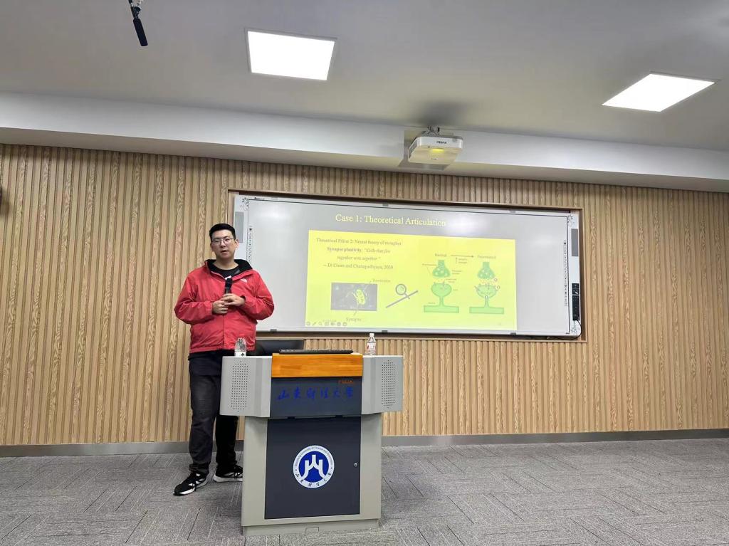 讲座聚焦餐饮与神经营销学的关系,深入探讨了近年来神经营销学领域的技术进步,包括眼动的发展历程以及其在消费者行为研究中的重要作用。于峻尉分享了两个具体研究。在第一个研究中,他介绍了隐含爆炸这一变量并提出相应的理论框架,分析了其传达菜肴感官信息并进而塑造下游消费行为(即感知味觉强度、感知味觉喜好)的潜力;第二个研究关注葡萄酒包装上的酒精警告标签(AWL)对视觉注意以及消费者选择的影响。与会师生就神经营销这一前沿领域的理论创新与实践、论文写作中的新范式与新方法、国际顶级期刊发表论文的心得和经验等问题与于峻尉进行了充分讨论与交流。
