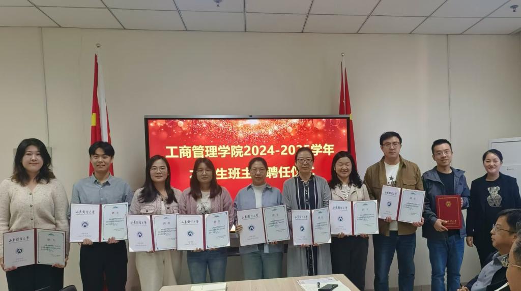 在Y207会议室举行了2024-2025学年本科生班主任聘任仪式。学院党委书记赵世民、学生工作部副部长张贞梅、学院党委副书记候昭瑾、工商系主任费振国、学院本科生班主任及部分辅导员参加了会议。会议由学工办主任陈盈君主持。