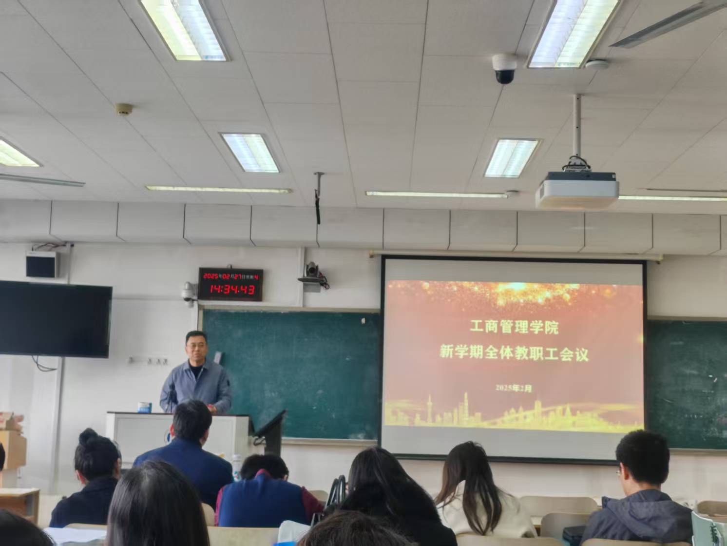 围绕2025年重点工作,徐鹏以“三个关键、三大行动、三重保障”为主线进行了统筹安排。一是紧抓“教育教学改革、科学研究创新、人才引育强院”三个关键点,二是实施“强责任的教学,提升人才培养质量;有组织的科研,打造标志性科研成果;优质化的社会服务,增强学院社会影响力”三大战略行动,三是筑牢“组织保障、文化保障、人才保障”三重保障,为学院发展提供有力支撑。徐鹏强调,新的一年学院全体教职工要凝心聚力、锐意进取、狠抓落实,以奋进工商的精神面貌,全力推动学院各项事业高质量发展。