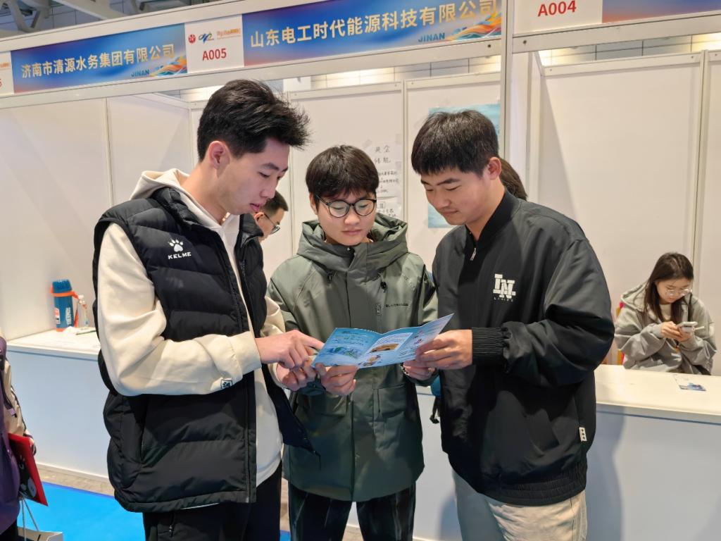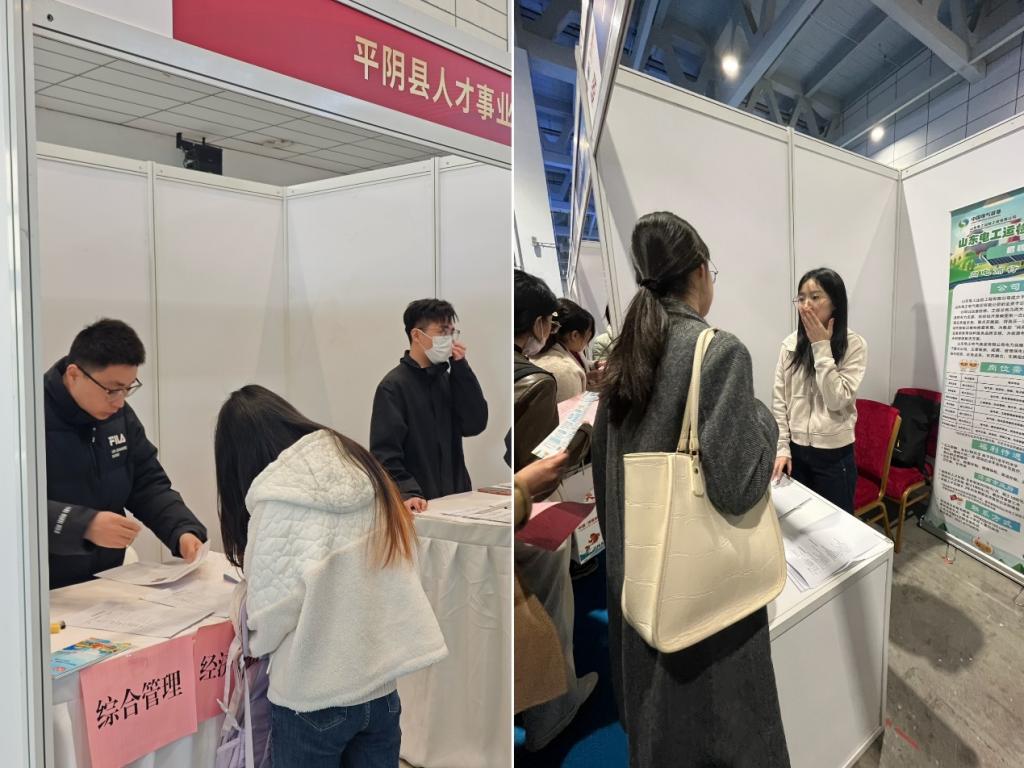 本次人才招引大会聚集了1700余家企事业单位,其中包含100个“泉有计划”招聘单位,提供职位超2.7万个,并向与会毕业生提供免费乘公交、游景区等优惠。大会现场,辅导员郭丽娟和任康认真收集用人单位招聘信息,了解用人需求,综合学院的学科特色和毕业生个人特点,向用人单位推荐毕业生。毕业生就业意愿强烈,积极踊跃向相关企业投递简历并详细咨询具体岗位职责、薪资待遇、发展前景等情况,不少同学与HR交换联系方式,以便后续沟通。毕业生曹炳凯说:“人才招引大会搭建起了我们与企业之间面对面沟通的桥梁,让我们更好地了解企业需求,极大地提高了求职的效率和成功率。”