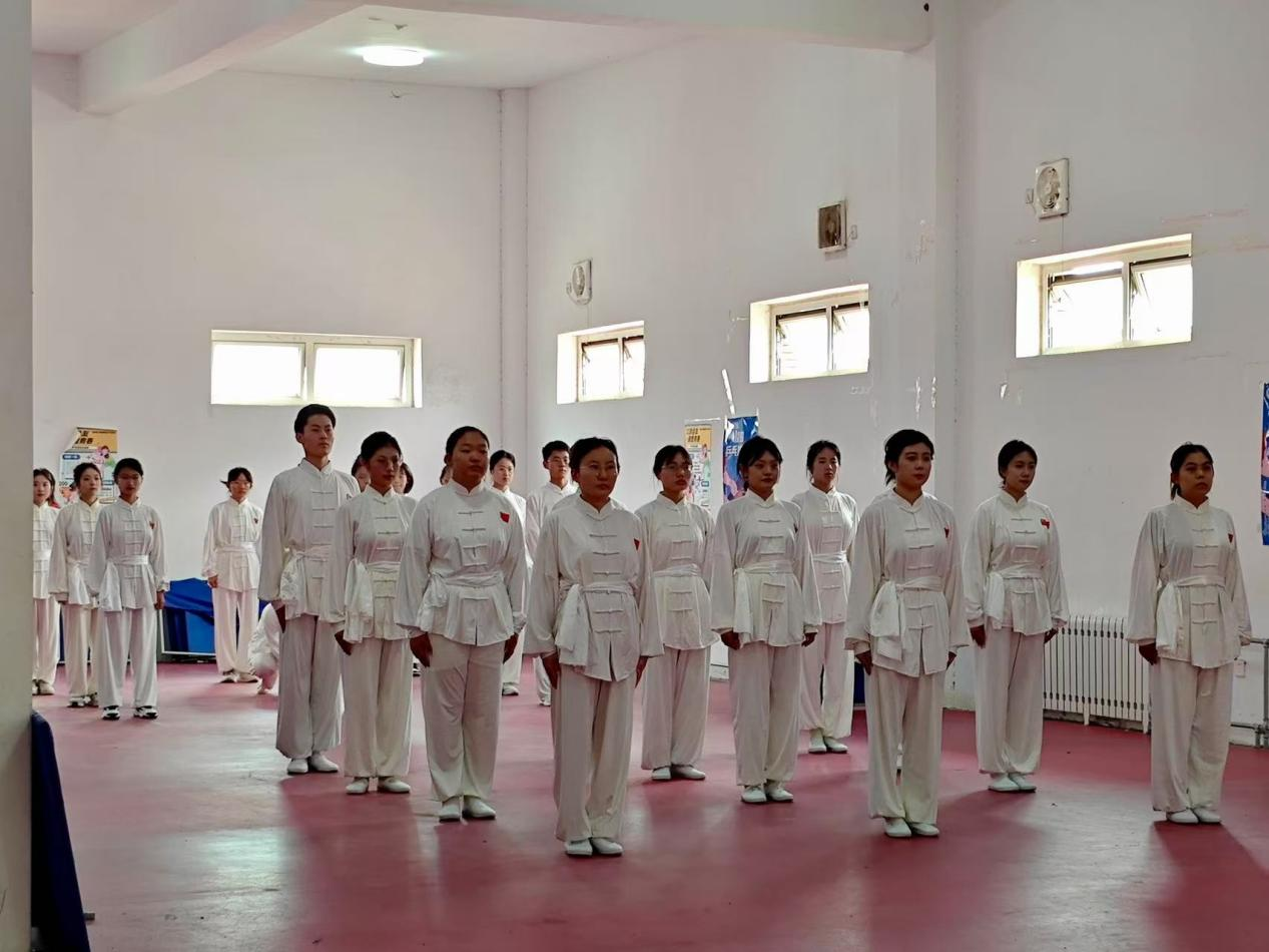 比赛中,代表队队员身着统一服装,以饱满的精神状态亮相赛场。参赛队员配合默契,动作刚劲有力,完整呈现武术运动的力与美,充分展现学院学子昂扬向上的精神风貌。
