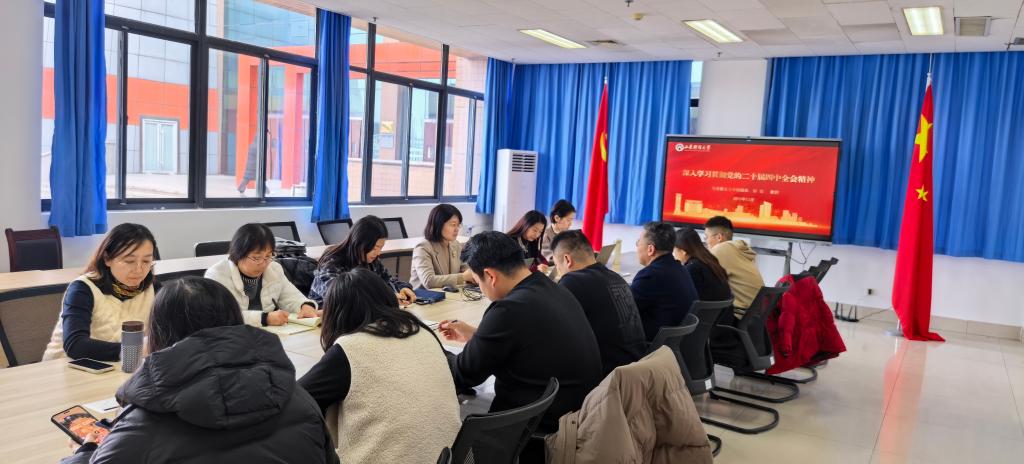 12月11日下午,学院党委理论学习中心组(扩大)开展专题学习,深入学习党的二十届四中全会精神,本次学习邀请马克思主义学院院长徐莹教授作专题辅导报告。会议由学院党委书记赵世民主持,学院党委理论学习中心组成员及各党支部书记参加。