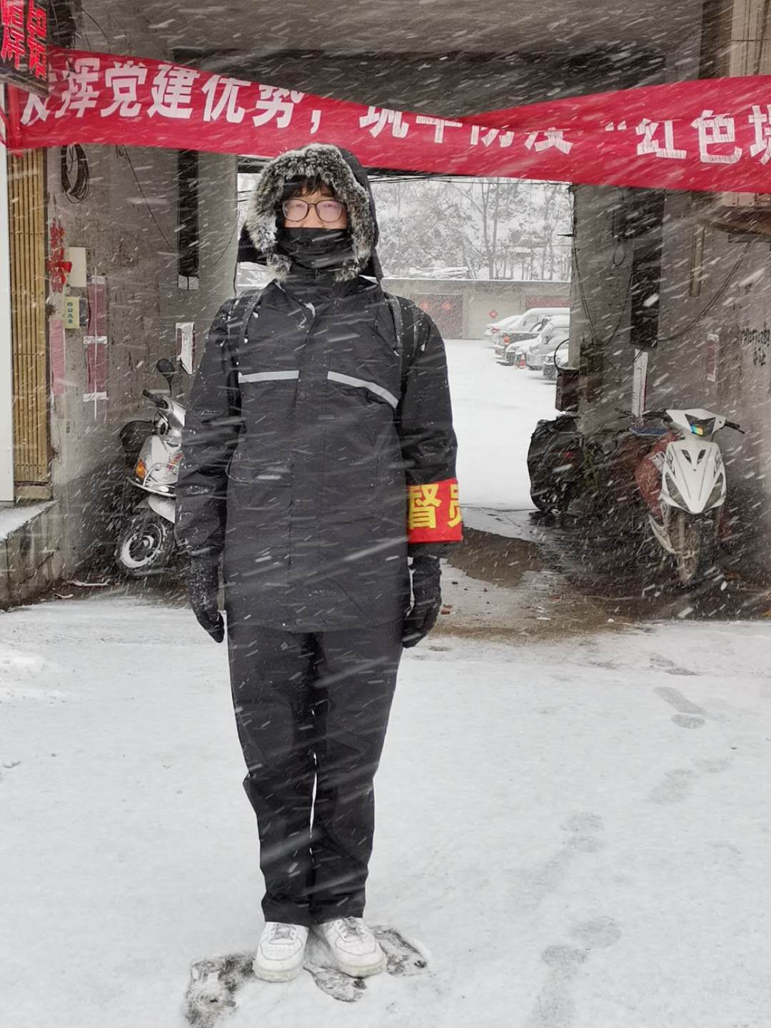 (志愿者郝鑫正在执勤)