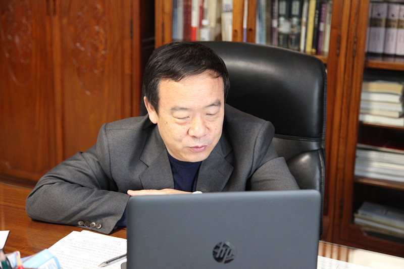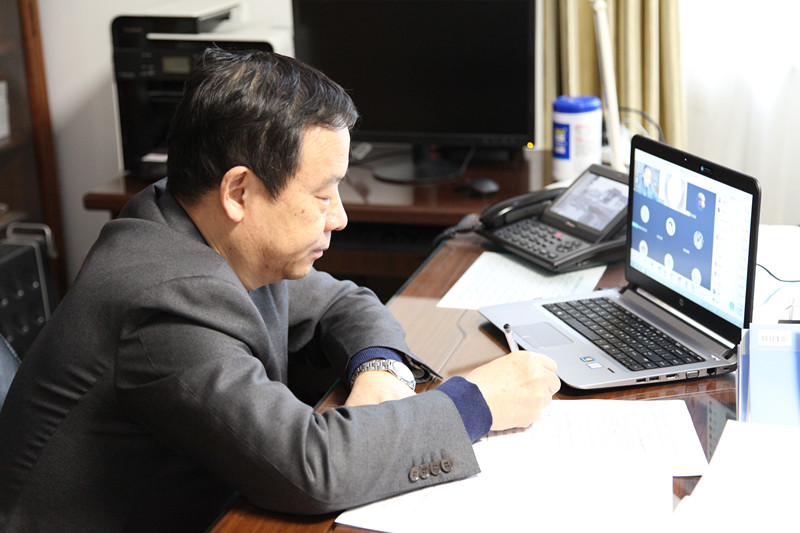 上午9:00,王邵军早早进入视频会议,与同学们互致问候,共叙家常,询问大家居家防疫和身体健康状况。