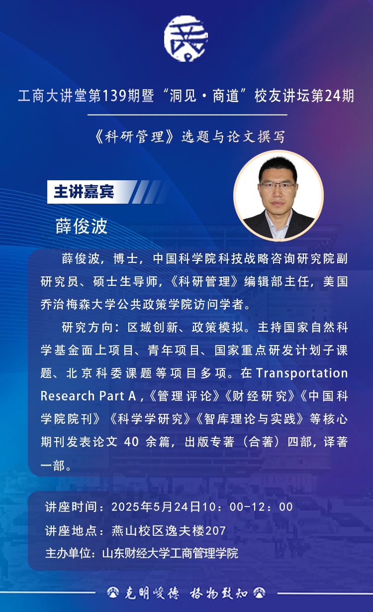 工商大讲堂第139期——《科研管理》选题与论文撰写