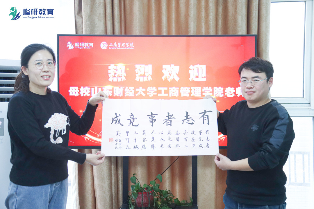 随后,黄军杰总经理回顾峰研创业历程,就峰研教育目前八大校区学员情况、校区动态、课程质量等进行简要介绍,并着重讲述了2022年面对疫情反复延宕,在公司发展、课程开展、服务落实受影响下,仍然有序对各项工作作出事先安排与快速处置。他表示未来将进一步做实事,出数据,做好校区扩建,容纳服务更多学生;做好校区设施升级,给学员更好的备考体验;做好团队服务升级,提供更多个性化辅导;同时期望加强与母校、母院的联系,帮助备考学生做好职业规划,做好报考院校指导分析,期望年底向学生、向母校交付一篇完美的答卷。