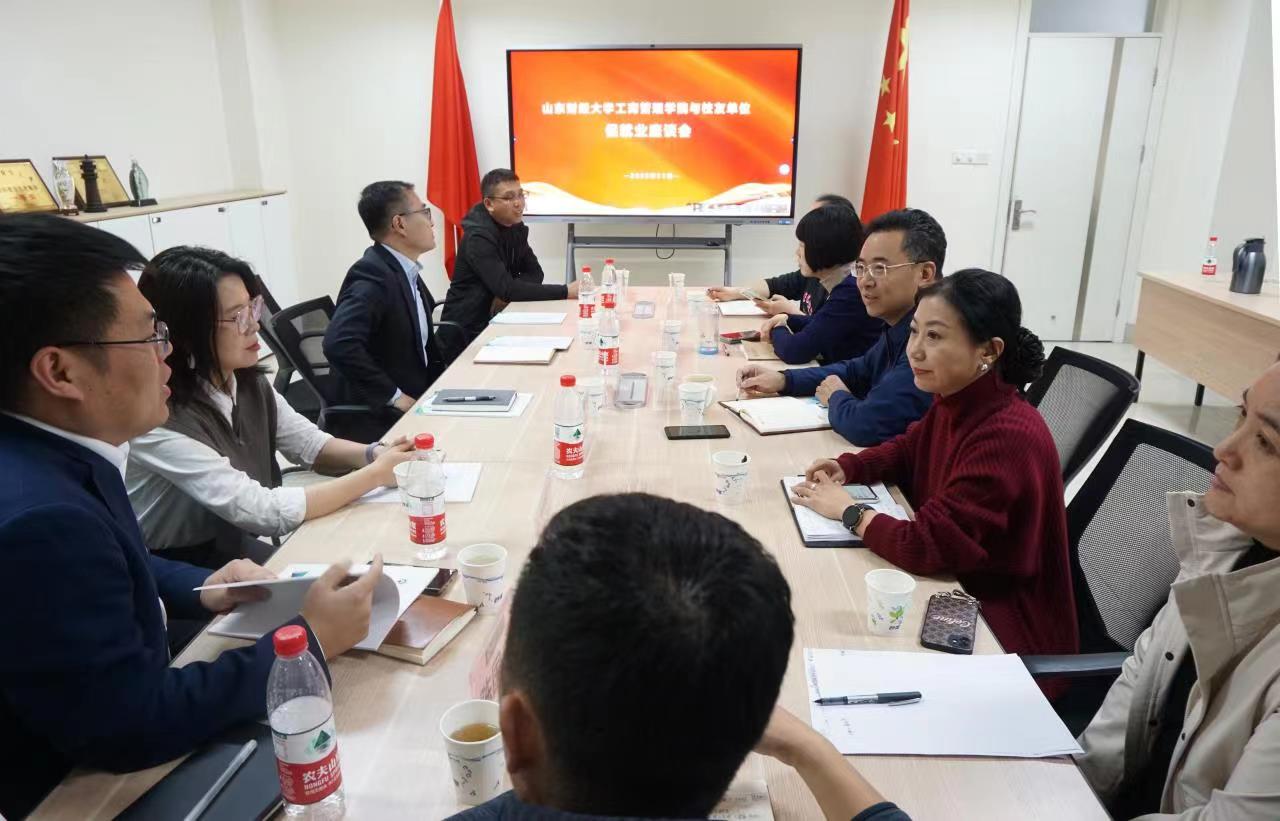 党委书记赵世民、院长苏昕、人才发展中心主任、副院长江岩,副书记彭艳红、侯昭瑾及人力资源系岳雷老师和7位人力资源行业校友代表进行座谈,就促进学生就业达成相关意向。