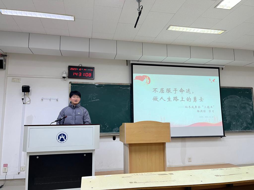 于12月14日下午在Y201教室开展了“不屈服于命运,做人生路上的勇士——向冬残奥会‘三冠王’杨洪琼学习”为主题的理论学习周周见活动,研一研二全体研究生参加。