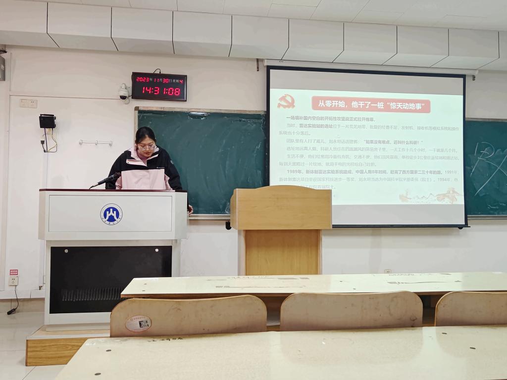 首先,王凯蒂同学介绍了时代楷模刘永坦。刘永坦长期致力于电子工程的研究与教学工作,是中国对海探测新体制雷达理论体系的奠基人,2021年被评为“全国优秀共产党员”,入选“3个100杰出人物”,被授予 “时代楷模”称号。