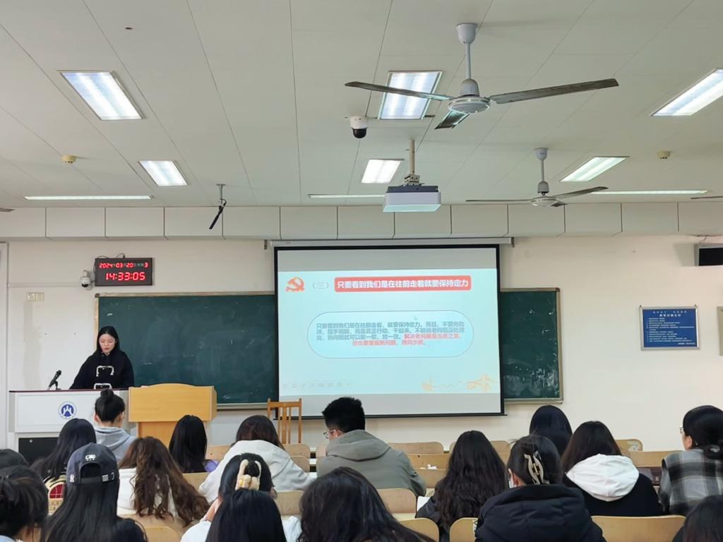 在Y202教室开展了以“凝心聚力谱新篇——学习2024年全国两会精神”为主题的理论学习周周见活动,由新媒体工作部尹秋月同学主讲,研一研二全体研究生参加。