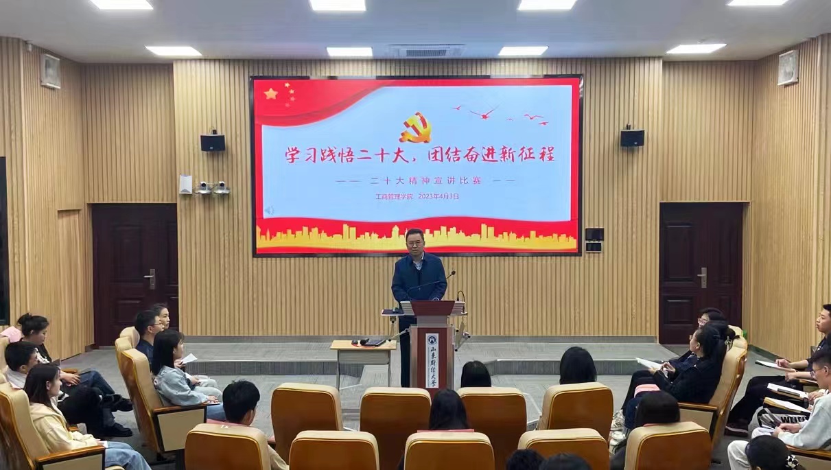 在逸夫楼103报告厅举办主题为“学习践悟二十大,团结奋进新征程”的二十大精神宣讲比赛。性爱网站