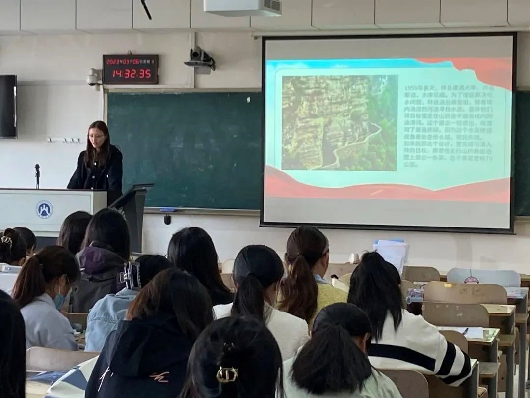 首先,研学会陈庆佳同学为我们介绍了红旗渠的修建背景。上个世纪60年代在河南的林县山区,百姓因缺水而备受煎熬。为改变百姓的现状,“引漳入林”工程开始投入建设。而红旗渠便是劳动人民经历十年之久完成的一项伟大成果,张买江便是这其中的建设者之一。