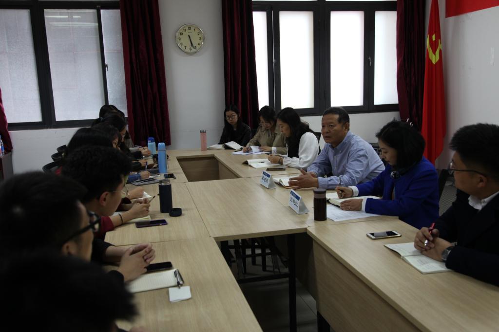在逸夫楼党员活动室召开研究生党员座谈会,学院党委书记李旭刚、党委副书记彭艳红、党委专职组织员徐建英、研究生辅导员尤泽民,以及学院20余名博士、硕士研究生参加了此次座谈,会议由党委副书记彭艳红主持。