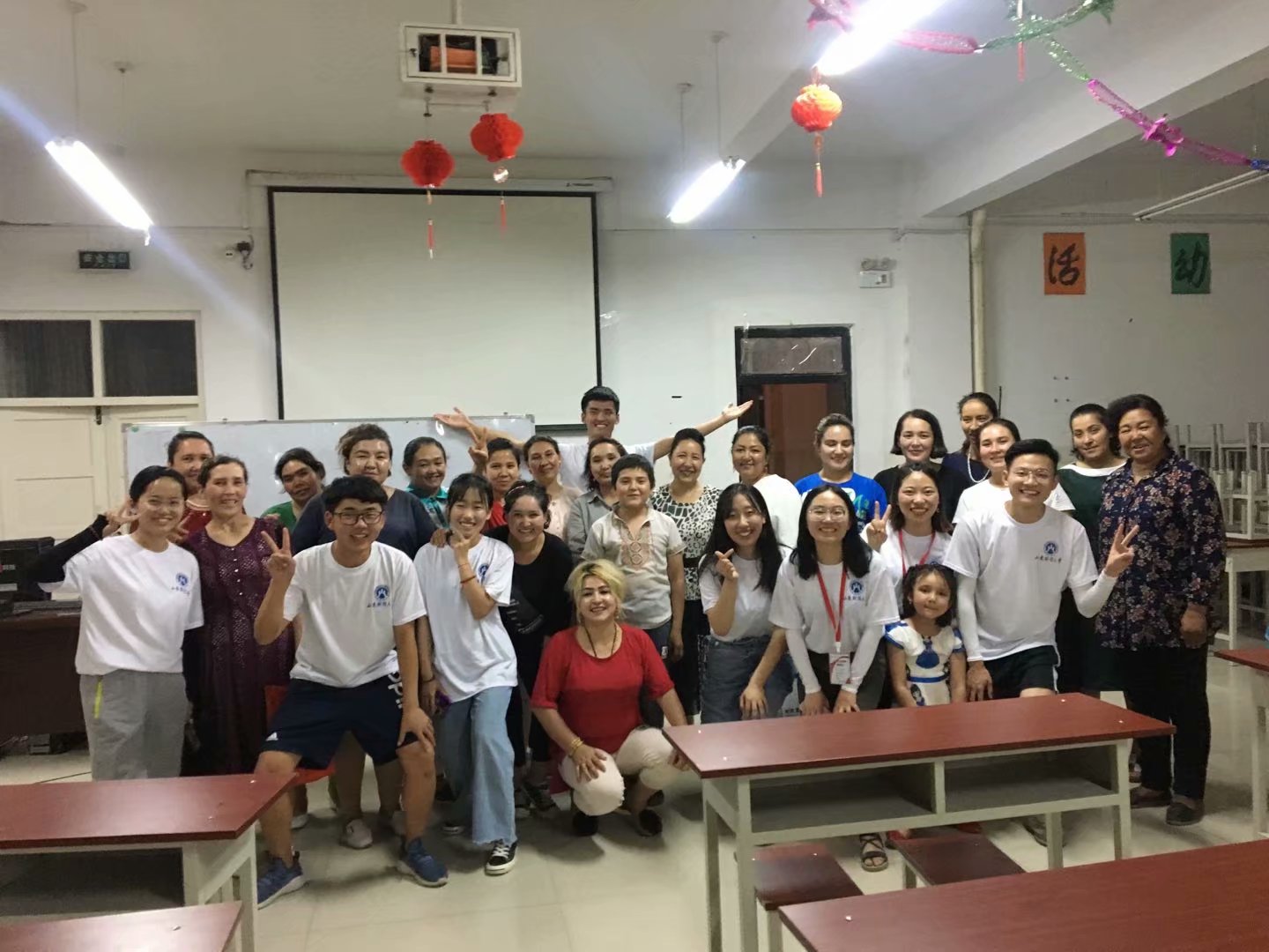 新疆一行4300多公里,从山东到新疆,一路向西终抵祖国的最西端。在这里,苟芳晴与团队成员们一同参与了文化路社区绘制中华人民共和国70周年文化墙活动、支教帮扶活动,同时还利用业余时间对当地维吾尔族居民进行普通话教学、绘画学习等支教帮扶活动,得到了当地社区居民的高度赞扬。在志愿服务中,最让苟芳晴动容的是第一次以老师的身份走进了课堂,紧张又胆怯。在课堂上,跟叔叔阿姨坐在一起进行了成人晚班普通话教学,互相分享东西部地区的文化、风俗、地理差异,在汉字学习方面进行交流和探讨。从一开始作为“小老师”的底气不足到能够与这些特殊的“大学生”一起交流沟通,甚至能够在普通话学习方面进行正确的引导,深刻体会到了作为一名老师的荣誉和应该有的责任和担当。
